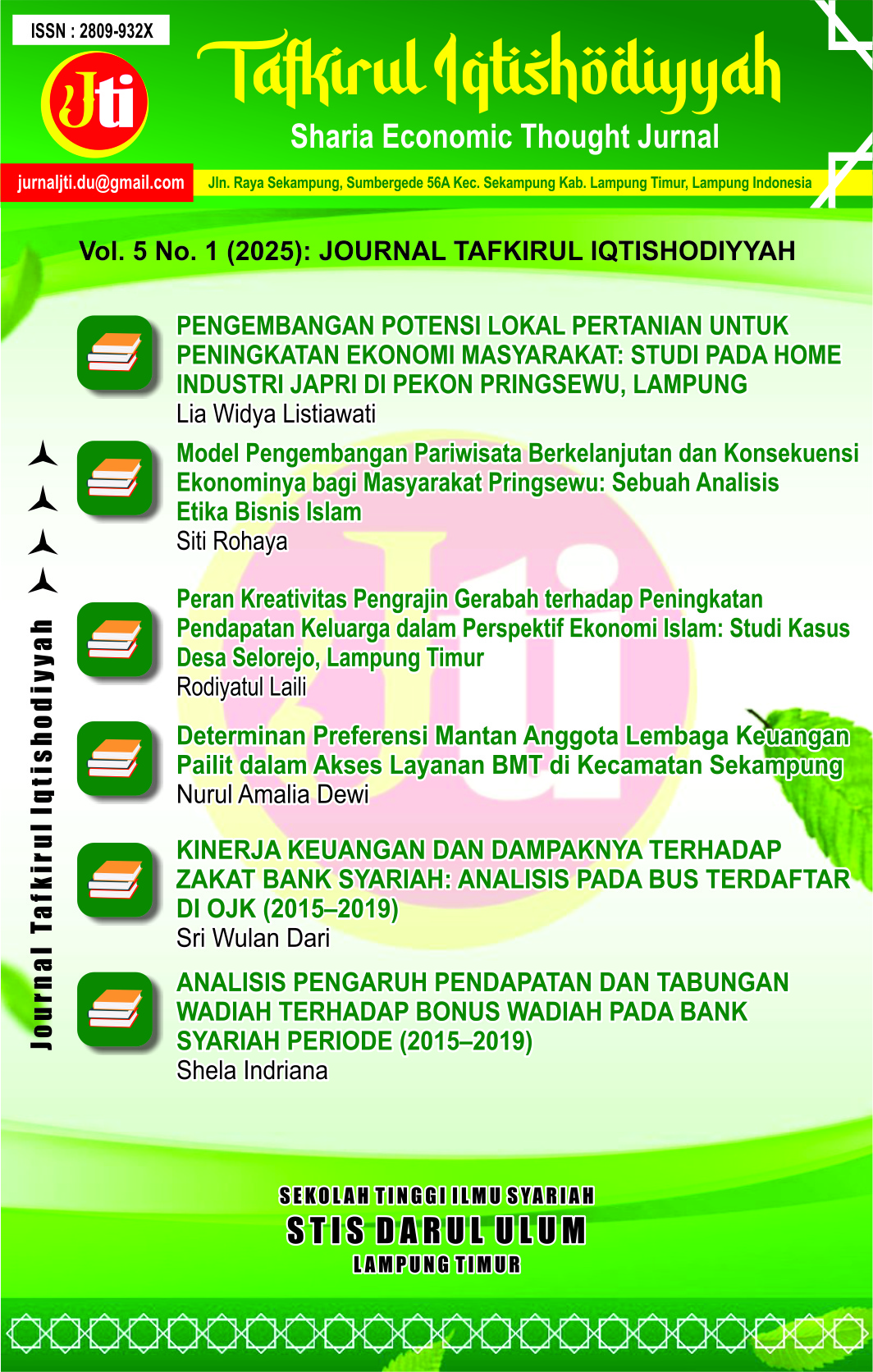 JOURNAL TAFKIRUL IQTISHODIYYAH (JTI) was published by the LPPM Darul 'Ulum Lampung Timur Institute of Sciences (STIS). Published twice a year, in June and December